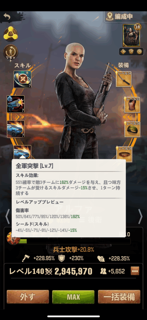んじゃ〜buffさえ全部高けりゃいいじゃん!って思うかもですが、生存者のスキルで火力は変わってくるので、どれを使うかも大きなポイントであります。