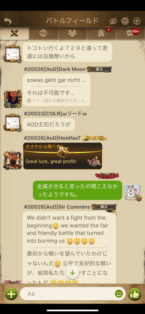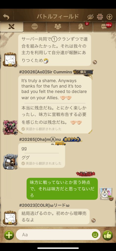 まあ〜今回の件であらためて思うのは、このゲームにおいて戦力数値はまったく役に立たないということです。あっちの連合はサーバー26と265のそれぞれトップクランで連合3クランを組んだのに、我々23に1日も経たず降伏したのがもう証明だと思います。