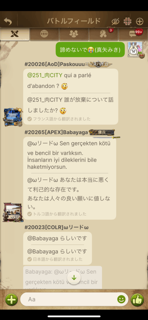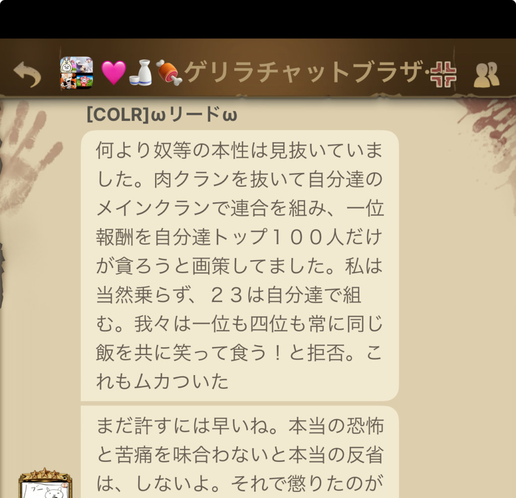 バトチャで煽って火をつけて真の戦いを求めて、敵に立ち上がってもらおうとしたんですけど、失敗しちゃった😭
