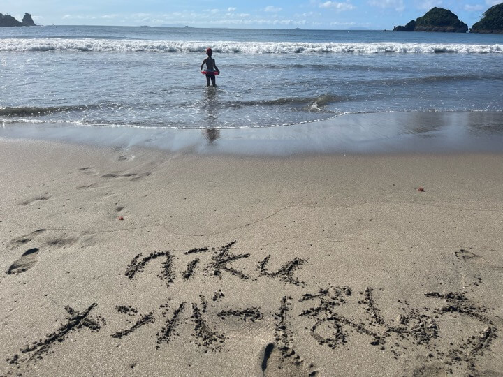 ただ台風🌀が近づいてるせいか、この日は私が見上げるくらいの超デカい波が来るときもあって、まともにくらうとけっこう大人でもやばかったですね。息子は3回くらい死にそうになってましたね。残念ながら息子のゴーグルは完全に行方不明になりました。